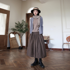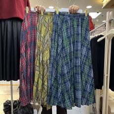 2025新款 复古纯棉格子半身裙春季a字中长款半裙显瘦百搭半身长裙