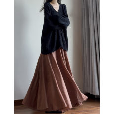 纯色半身裙女文艺风复古高级感大摆裙褶皱显瘦a字裙春夏新款长裙