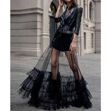欧美黑色蕾丝半身裙女复古网纱拼接长裙性感镂空裙子夏季休闲