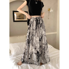 水墨国风半身裙女夏季薄款高腰a字显瘦法式雪纺碎花复古休闲长裙