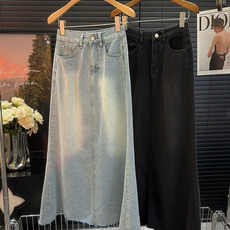 高腰显瘦复古半身裙女秋季新款毛边a字包臀鱼尾长裙高级感牛仔裙