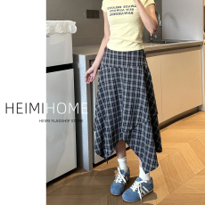 檬系~百搭高腰不规则格纹半身裙女2025秋季新款复古修身A字中长裙