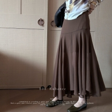 RK高腰长裙女2025秋季水洗棉后开叉A字裙复古显瘦百搭休闲半身裙
