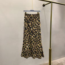 欧美风复古豹纹裙子高腰抽绳包臀半身裙中长款a字长裙雪纺鱼尾裙