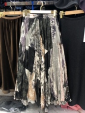 复古印花褶皱拼接款大摆半身裙女秋冬2025新款高腰显瘦A字裙长裙