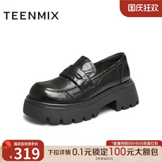 天美意复古英伦乐福鞋休闲单鞋女平底小皮鞋春秋新款CPC11CA4