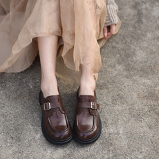 品牌英伦风厚底粗跟小皮鞋女春秋季真皮复古单鞋圆头金属乐福鞋