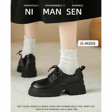 英伦风小皮鞋女2025新款单鞋子学院风复古厚底增高黑色系带乐福鞋