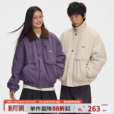BUFU美式vibe复古翻领飞行夹克保暖棉服bomber短款外套男