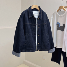 夹棉加厚复古丹宁蓝撞色格纹袖口明线牛仔外套女冬季保暖上衣棉衣