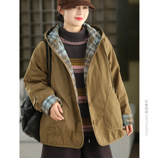 园园美衣冬季复古100%棉夹棉外套女内里格纹加厚两面棉袄保暖棉衣