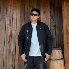 AWRB美式复古cleanfit翻领刺绣棉服男宽松休闲百搭简约外套