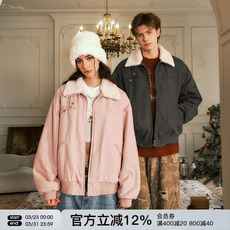 FORNINES可拆羊羔毛翻领加厚棉衣男女情侣装潮牌冬季复古工装外套