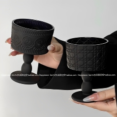 法式复古黑色磨砂烛台家用高级感香薰蜡烛玻璃底座氛围感装饰摆件