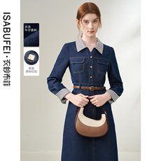 百家好轻奢复古长袖牛仔连衣裙秋季新款收腰显瘦气质减龄休闲长裙