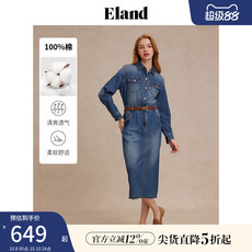 【100%棉】Eland衣恋衬衫裙女复古H型落肩牛仔连衣裙2025夏季新款