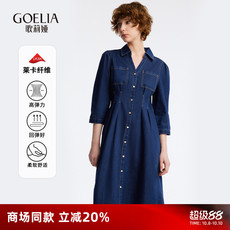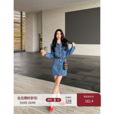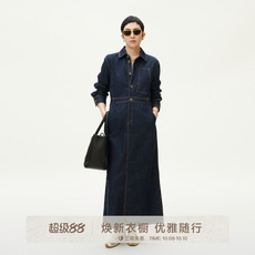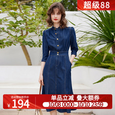 GOLDEN BARRY金和百瑞春秋精致复古牛仔棉质衬衫领连衣裙306039