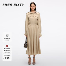 [挺括有型]防晒Miss Sixty25春秋牛仔连身连衣裙配腰带复古风休闲