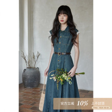 Z家牛仔连衣裙女装夏季2025复古港风短袖收腰显瘦气质衬衫短裙子