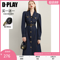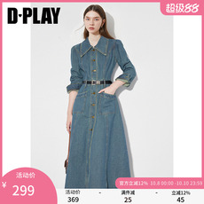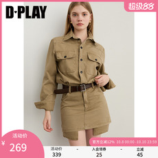 DPLAY2025年秋季新款卡其色连衣裙女短款复古宽松牛仔裙子短裙
