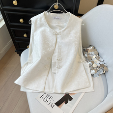 高档气质复古时尚盘扣马甲洋气宽松显瘦提花刺绣马夹坎肩短袖上衣