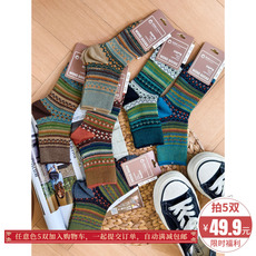 小耳出品 舒适透气棉质复古文艺民族风百搭多色休闲中筒袜女