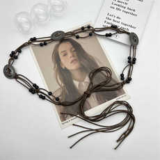 波西米亚民族风手工编织腰带女士复古棕色流苏腰链装饰连衣裙皮带