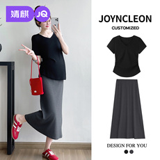 婧麒孕妇套装2025春夏新款时尚休闲百搭显瘦半身裙两件套