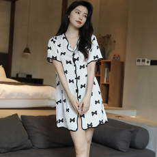 冰丝睡裙女薄款夏天短袖睡衣女开衫小翻领网红连衣裙家居服高级感