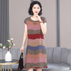 仙儿狄夏天莫代尔睡裙女短袖夏季睡衣女薄款中年妈妈睡衣连衣裙子