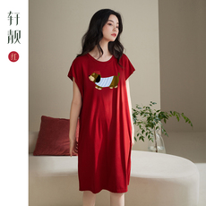轩靓睡裙女士夏季薄款纯棉短袖睡衣休闲简约可外穿大码夏天连衣裙