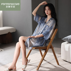 芬腾睡裙女夏季新款薄款短袖睡衣裙甜美少女夏天大码连衣裙家居服