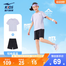 氢风|特步童装女童短袖短裤两件套2025年夏季新款儿童短T拼接套装