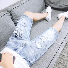 夏季五分牛仔裤男士韩版修身夏天薄款5分短裤潮流男装男裤子七分7