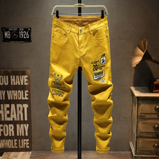 JEDOSS/爵迪斯夏季新同款男士炫彩绣章印花棉弹修身牛仔裤020