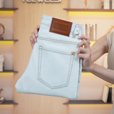 博世堡飞鱼牛仔裤夏季新款男士浅蓝色水洗弹力百搭修身直脚小直筒