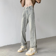 复古蓝牛仔裤男款2024新款夏季薄款直筒修身微喇美式高街vibe裤子