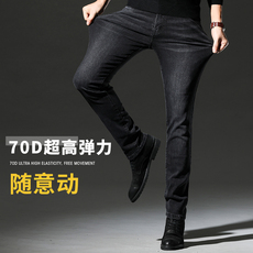 宽松直筒男士牛仔裤夏季新款超薄款修身春秋款爸爸长裤子男裤弹力
