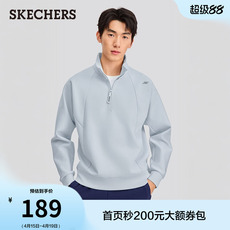 斯凯奇夏季时尚新品男款半开胸针织卫衣舒适柔软运动休闲衫长袖衫