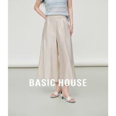Basic House/百家好夏季新款高腰垂感七分裤薄款宽松韩版休闲裤女