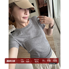 灰色正肩纯棉短袖t恤女装2025新款夏季美式复古冷淡系高级感上衣