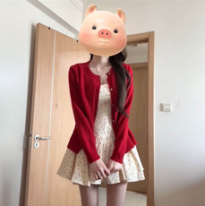 夏季新款日系甜美风超仙波点吊带连衣裙女搭配红色开衫外套两件套