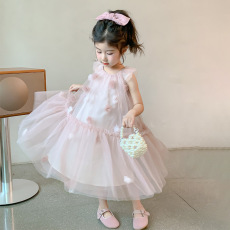 女童无袖连衣裙夏季2025新款洋气礼服蓬蓬裙儿童高级感网纱公主裙