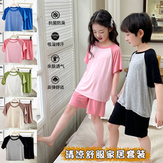 夏季薄款莫代尔儿童睡衣男童空调服中大童短袖长裤套装青少年女童