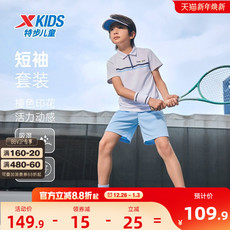 特步童装夏季男童运动针织网球套装儿童运动短袖短裤中大童两件套