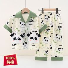 儿童100%纯棉开衫睡衣中大童薄款夏季短袖长裤家居服套装男童女孩