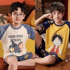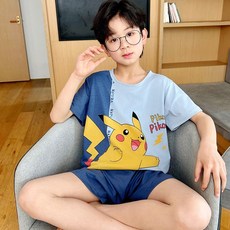 久岁伴儿童睡衣男童夏季家居服套装中大童高弹圆领透气短袖短裤