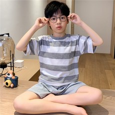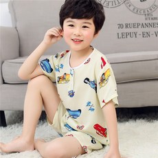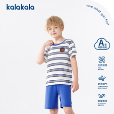 英氏莫代尔儿童睡衣夏季薄男孩中大童短袖短裤套装a类家居服男童