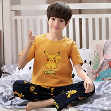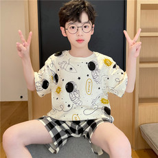 久岁伴儿童睡衣男童夏季家居服套装中大童宝宝薄款透气短袖长裤