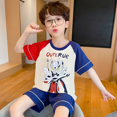 夏季新款圆领套头短袖纯棉男童睡衣洋气卡通可爱中大童家居服套装